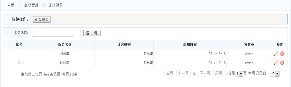 規(guī)則列表:展示系統(tǒng)內設置的所有的服務項目 (操作一欄 可以對每條規(guī)則進行修改和刪除 )