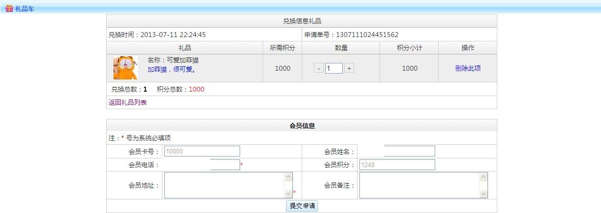 流程: 查詢禮品----->點(diǎn)擊兌換(加入購物車)----->審核購物車(提交申請(qǐng))----->等待審核